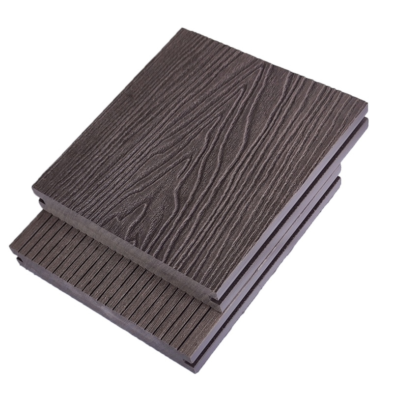 أرضيات خارجية من الخشب البلاستيكي المركب (WPC) بنقوش ثلاثية الأبعاد باللون البني الداكن